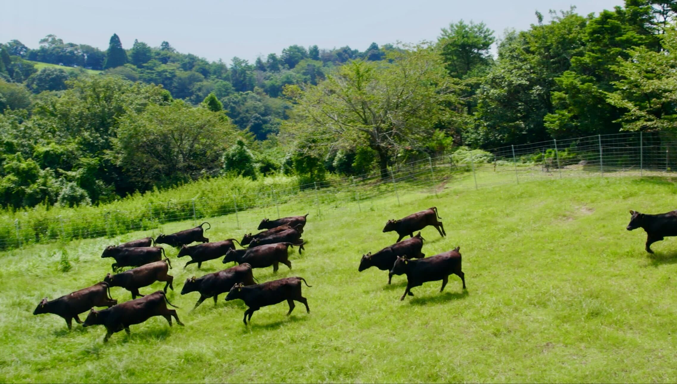 Wagyu calves are raised on pasture for approximately 14 months in a rich natural environment, where they are free to move and grow with minimal stress.