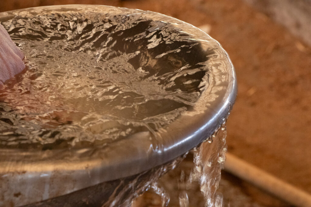 Because water significantly influences organ health and meat quality, Arita Farm ensures a constant supply of pure water.